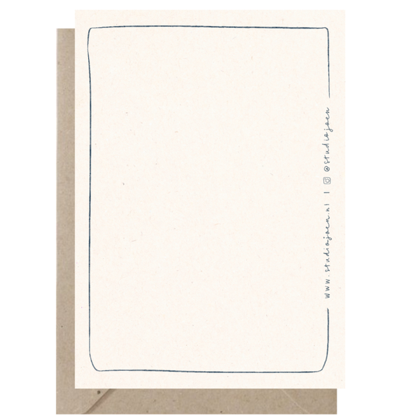 Dit kaartje wordt gedrukt op papier van 5% hennepvezel, 40% gerecycled papier en 55% nieuwe papiervezels (FSC gecertificeerd). Een duurzame keuze dus! Af en toe zie je in het papier lichte vezeltjes en speelse spikkeltjes. Leuk hè?!