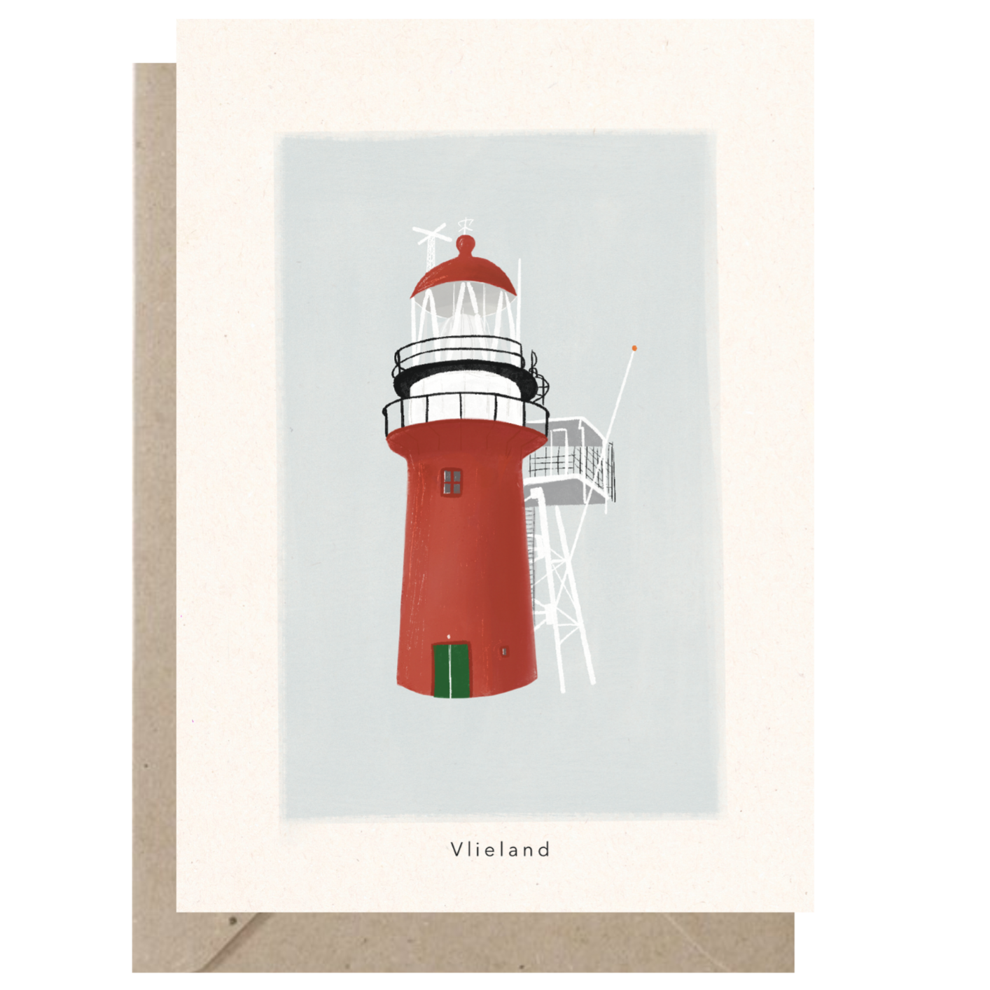 De vuurrode vuurtoren van Vlieland; herkenbaar hè? Stuur dit kaartje naar jouw vader die vroeger op Vlieland opgroeide of jouw oma die graag wandelt op Vlieland.