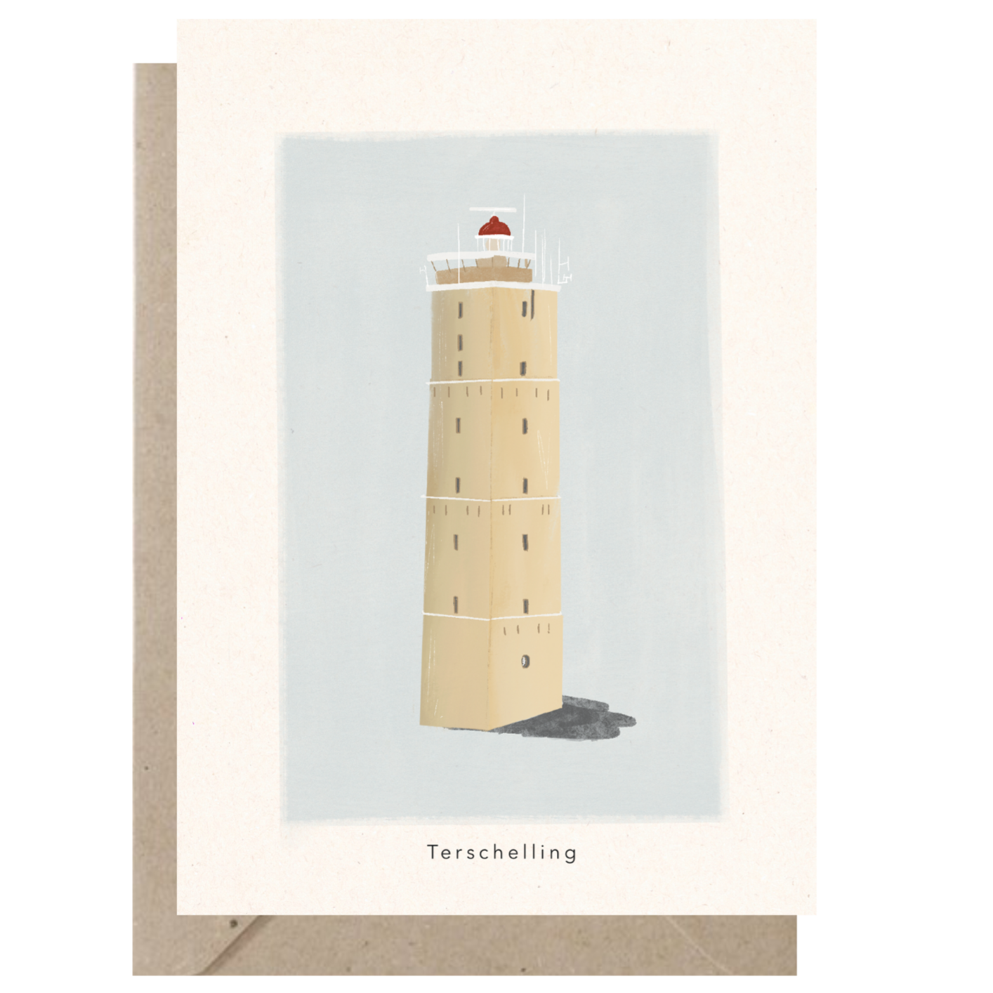 Deze vuurtoren van Terschelling is mega herkenbaar! Stuur dit kaartje naar die vriendin die een winkel heeft op Terschelling of jouw moeder die zo graag naar het strand gaat op Terschelling.