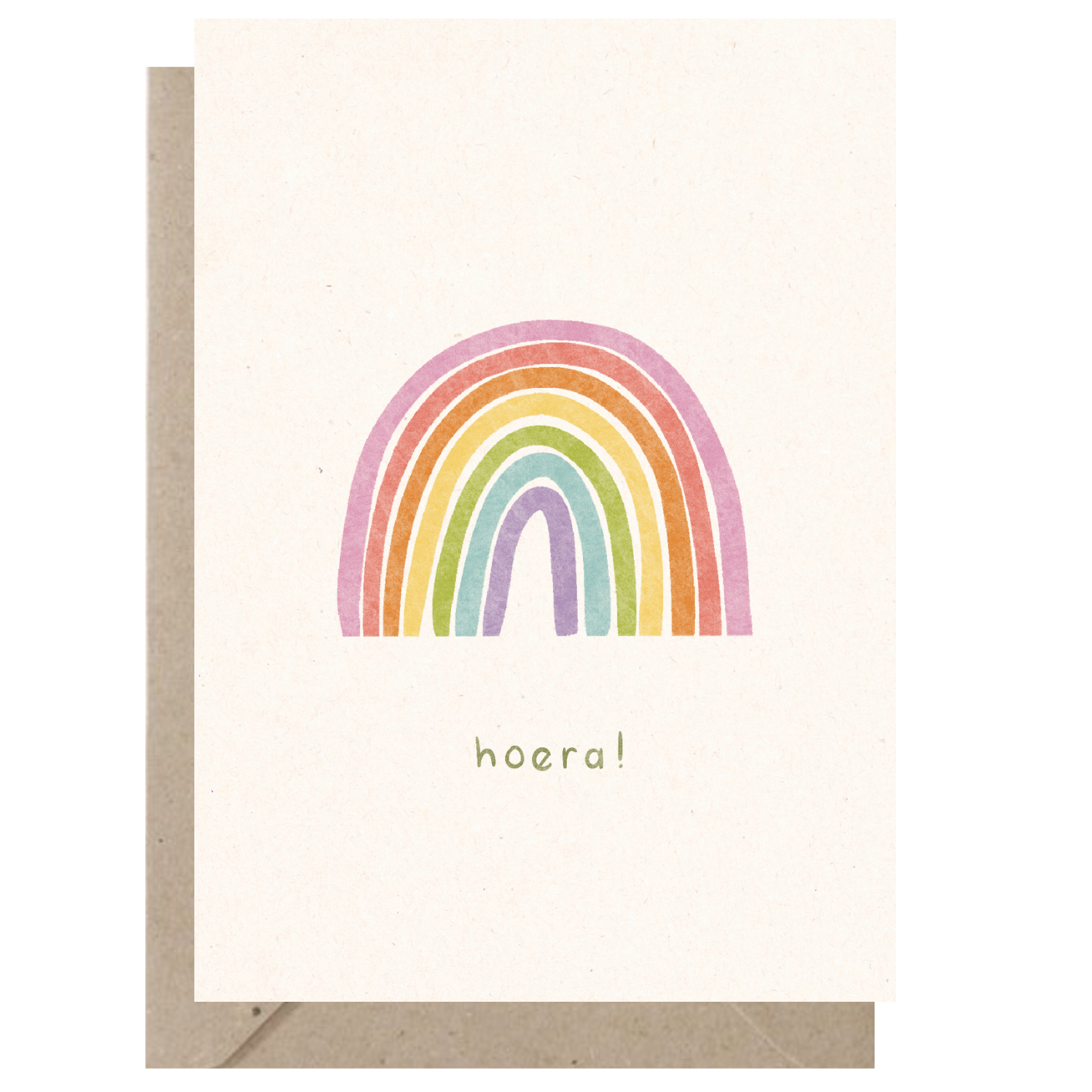 Hoera! Wat vier je vandaag? Je stuurt dit vrolijke kaartje bijvoorbeeld naar jouw huisgenootje die jarig is, jouw zus die haar kappersdiploma heeft behaald of broer die zijn eigen onderneming is begonnen!
